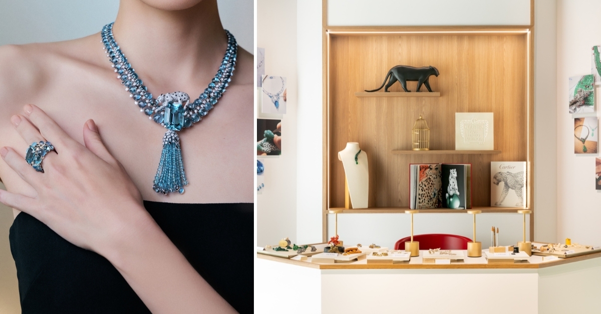 展覽中,最引人注目的作品當屬Panthere Algarrobo項鍊/戒指:一隻靈動美洲豹守護著48.62克拉海藍寶石,周圍層層鋪陳107顆海藍寶石,縞瑪瑙的細節則在光影之間勾勒出節奏與結構。這件作品同時展現了力量、優雅與比例的極致掌控,是整個系列的靈魂之作。全系列作品凸顯卡地亞對比例、光影、結構與色彩語彙的完整掌握,在精準計算的克制之中仍展現華美與活力。